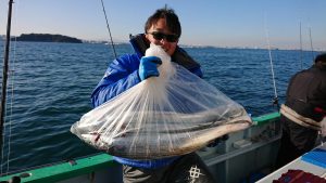 前半はかなり間の空いたアタリで、相変わらずの厳しい展開でしたが、潮変わり頃からアタリの数は徐々に増え出して、9番手まで10本越えでトップの田辺様はジグとテンヤのコラボで19本。
