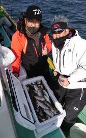 10時過ぎに南西風が非常に強くなり風裏のポイントに移動しましたが、こちらでも小~中型主体に好調に釣れて、皆さまお土産はバッチリ確保出来ました。