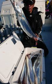 反応が出ているだけで、アタリの出ない時間帯も少し有りましたが、2番手、3番手は二桁越え、同船されたテンヤタックルの方は4人様で、トップ15本で3名様は二桁越え、今日始めてテンヤタックル挑戦の太田様は8本ながらも本日最大の131cmをキャッチされました。