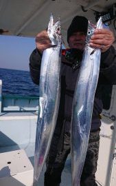 今日はテンヤタチウオ初挑戦の方が4人さんご乗船で、その内3人さんはスピニングリール&キャスティングロッドの仕様で少し心配でしたが、1〜5本で皆さんキャッチ!。