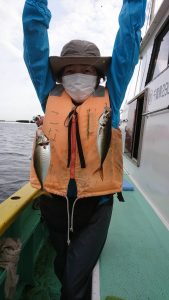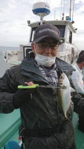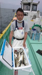 派手な釣れ方ではありませんでしたが25~30センチの体高のあるアジが揃い、皆さまお土産は確保出来ました。終盤も船中で誰かしらが釣れてる位の釣れ方で続きました。