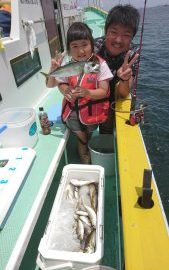 苦しい状況の中でしたが、池田莉恩ちゃん(6歳)はお父さんにサポートしてもらいながら35匹を見事釣り上げ、お父さんは面倒を見ながらの竿頭で大忙しでした。