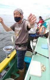 コメント: 久しぶりの午後アジ船で出船で慣れないお客さま、レンタルタックルのお客さま、多数いらしたので、一先ず練習を兼ねて浅いポイントからスタート。