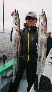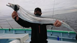 前半から頻繁なアタリは無く、魚影は多く出るものの中々気難しいタチウオでジグを投入直後にヒットしても直ぐに移動してしまったりの繰り返しでしたが、