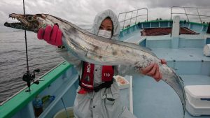 124cm(2.1kg)を釣り上げた大庭様はそれまでキャッチ無く