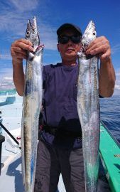 魚影は良い感じで出て、僚船のエサ釣りには良く反応していた様ですが、ジグでの反応は今一つでポツン・ポツン程のアタリ方で今日は残念ながら盛り上がり無く終了でした。