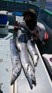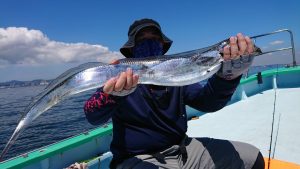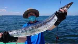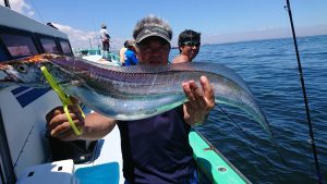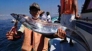 今日は朝からタマ網の出番で、120cmクラスは船中5本。