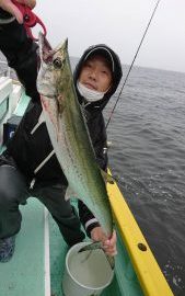 コメント : 今日は、最初から最後まで船の周りでサワラの跳ねが見られ、今日も一流し目から型を見られました。