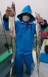 ポツン、ポツンと釣れ上がりやっとタチウオの姿を確認出来たのですが、ラインカットやバラシ等も有ったものの タチウオのジグへの反応は悪く 型見ずの方も出てしまい残念!。