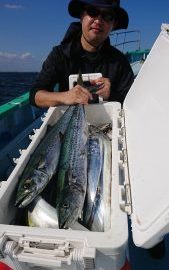 珍しくタチウオのスソ釣果だった平山様は、ほぼサワラ狙いで、11本掛けて7本キャッチ!。