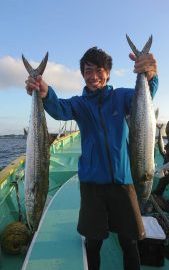 北東風が強めで釣りずらい状況でしたがスタートは午前中からアタリが継続中のポイントへ向かいました。ベイトの反応は、たっぷりと有り開始間もなくから、連続ヒットが有り、流し変える度にポツポツとサワラが釣れて、イナダが釣れたり、タチウオが連発した時間帯も有り、アタリが多く、盛り上がりました。