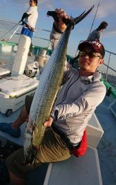 台風一過の今日は、雨水が多く流れ込み 中々サワラのハネやナブラは見れませでしたが、イナダの群れに付いたサワラを狙い サワラは2.4kg〜3.2kgが0〜1本。船中5本キャッチでした。