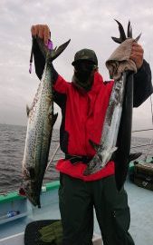 後半からは徐々にベイト反応も多く見れ始めてワラサまじりにサワラの活性も上向き出して、トップの江沢様は数回バレはあったもののサワラは3本キャッチ!。2番手2本が5人様で船中合計17本でした。
