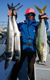 今日もサワラは早々にキャッチ出来たのですが、その後のアタリが無く転々としてやっとアタリがで出し、2人、3人とヒットが続いたのですが