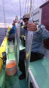 サワラ 船中 2匹、イナダ 0~1匹 船中2匹、タチウオ0~2匹 船中5匹、ワラサ1匹。