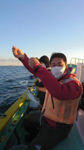 ☆☆晴れていても波しぶきを被ると頭上から濡れるので必ず、頭から波しぶきをかぶって濡れたり、コマセをかぶって汚れても大丈夫な服装上下で乗船してください。