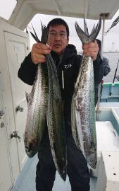 サワラは今日も順調で、お一人様残念でしたがワラサで終わってしまいましたが、ルアー五目船が2回目のチャレンジだった女性アングラーも3kgアップ2本キャッチで、