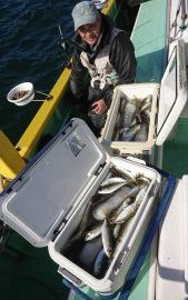 コメント : 今日は朝のうちは北風が強く、30分遅れて出船しました。開始からアジの活性が高く、20センチ前後の食べ頃サイズが主体でダブル、トリプル…と好調にアタリが続きました。