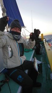 コメント : 今日の日の出前のサービスタイムは深めのポイントから狙いましたが25センチ前後の良型混じりでポツポツと好調に釣れました。