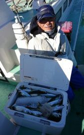 朝一の模様は7時頃には終息してしまい、小アジが多くなり、ポイントを移動しました。下げ潮に変わってからは今日も小~中アジとサバが入り交じって釣れて、底棚を細かく探ってタナで釣り分けられたお客さまはアジの数をコツコツと伸ばしました。2番手80匹。