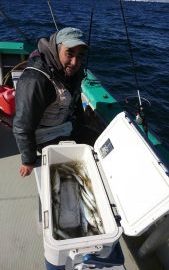 深めのポイントへ移動してからは、小アジを主体に、たまに中型も混じってポツポツとアタリが続き、時々ダブル混じりで好調にアタリが続きました。2番手54匹。平均30匹前後でした。