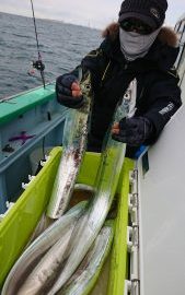 2番手5本で バラシのみで、お一人様だけタチウオの型見ずとなってしまいましたが、朝イチにサワラをキャッチ出来てました