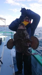 今日は船内で どよめきが有り、それは坪井様の釣り上げた 見事な「10.2kgのアンコウ」でした。