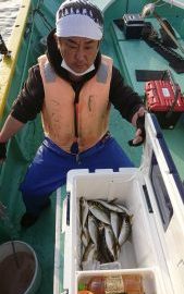 この時期のシビアなLTアジは初めてのお客さまで前半はコマセと喰わせエサがなかなか同調せず、たま~に釣れる程度でしたが終盤になって、やっとコツを掴んで頂き、ポツポツとアタリが続いて、皆さま、お土産は何とか確保出来ました。