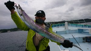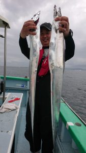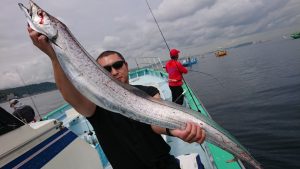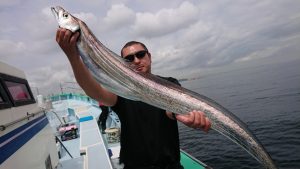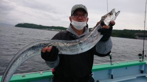 昨日より朝から盛り上がった魚影は見られず、低めな魚影で早々には釣れ上がったものの活性は低めな様子で前半は低迷状況でしたが、後半からやっと盛り上がった魚影も確認出来て派手さは無かったのですが、可愛いサイズもまじりアタリは増え始めてトップの諏訪様は118cm,122cm,118cm 3本をを連続ヒットで4本目は顔つきは120cmアップでしたが、残念ながら魚体の3分の1が有りませんでした。