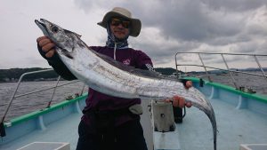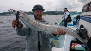 今日も早々に小振りなサイズながらも活性は高く、全体的にアタリが出てくれて、潮の流れが効き出した頃からやっとメーター前後の良型が出始め、時折 F6〜F8の太い大型タチウオがヒットして、船内はヒートアップしてました。