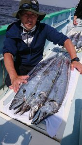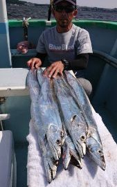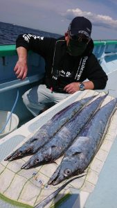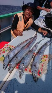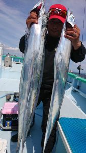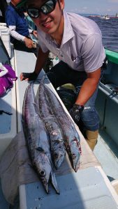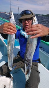 今日は潮の流れが ピリッと速く苦戦しそうかと思いきや ポツ・ポツと釣れ上がり、徐々にアタリの数が多くなり始めてからは2人・3人同時にヒットする場面も見られて開始早々には良型もまじり、途中からは小振りなサイズが殆んどでしたがタチウオの活性は高く好調でした。