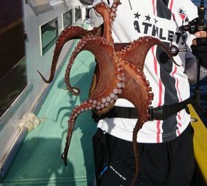 開始直後にいきなりキロオーバー釣れて喜んでいたのも束の間、エギタコ船が初めてのお客様で取り込んでから手こずり、排水の穴から逃げられてしまうハプニングからのスタートになりましたがその後はポツポツと好調に釣れて、ほとんどキープサイズが揃って4名さま皆さまお土産を確保出来ました。