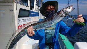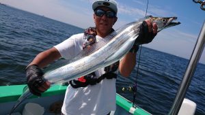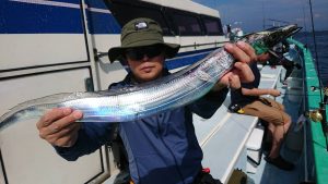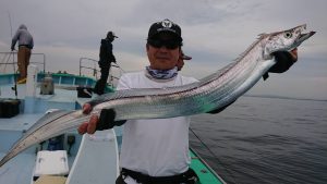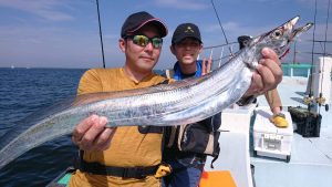 序盤は潮の流れが少し効き始めた頃からアタリが増え始めて 小振りなサイズがメインの浅場のポイントでも、大型タチウオもキャッチ出来ました。