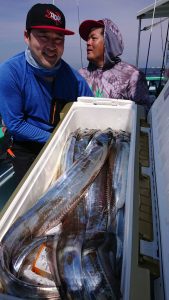 途中からは走水沖へと向かい、タチウオの活性は今一つながらも小・中・大クラスがまじりでヒットしてくれました。