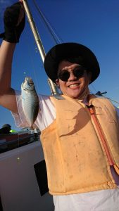 ☆☆晴れていても波しぶきを被ると頭上から濡れるので必ず、頭から波しぶきをかぶって濡れたり、コマセをかぶって汚れても大丈夫な服装上下で乗船してください。