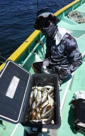 コメント : 今日も朝一のサービスタイムは短時間でしたがスタートから活性が高く入れ食いモードでモリモリ釣れました。その後は空振りがあったり、転々と狙って行って、今日は小サバや豆アジなどは混じらず釣り易かった反面、アジの活性も今一つ上がらず、数が伸びませんでした。