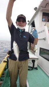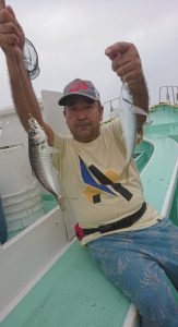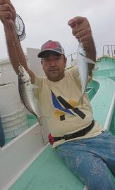 コメント : 今日も潮の流れが弱い為か、小アジ、カタクチイワシ、サバ…が入り交じって中型のアジもポツリポツリと釣れて早めに全員キャッチ出来ました。