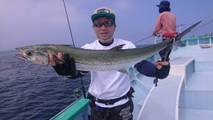 気持ちを変えてタチウオ狙いに切り替えてこちらは間が空きながらも何とか釣れ上がり、大分アタリが遠退いたところに僚船情報で’サワラ’キャッチの朗報で、急遽サワラ狙いに切り替えて、3.03kgと