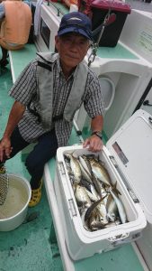 上げ潮に変わってからもペース変わらずたまに釣れるくらいでしたが豆、小、中とサイズは入り交じって皆さまお土産は確保出来たようです。