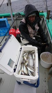 先週までは小アジが主体だったポイントですが今日は20センチ前後の食べ頃サイズが揃って、ベタ凪ぎ、ポカポカの陽気でのんびりとアジ釣りを楽しんで頂きました。