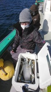 少人数だった為、魚探の反応が出たり入ったり落ち着かない様子でしたが、今日も良型揃いで釣れました。
