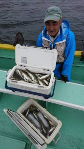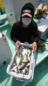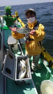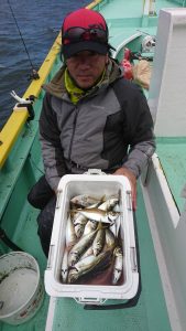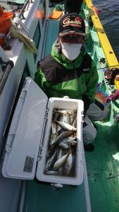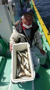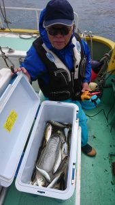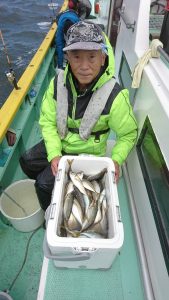 タナの取り方やコマセの撒き方によって釣れてるお客さまとなかなかアタリが出せないお客さまと、アジを掛けられるお客さま方には難し面白い釣りでしたが、なかなかアタリが出せないお客さま方には、非常に難しい釣りでした。
