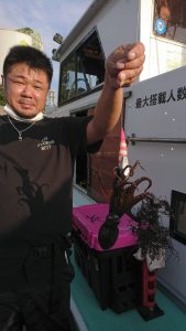 明日6日(土)は午前エギタコ船で確定しておりますのでご予約お待ちしてます。尚、7日(日)はタチウオ船2隻の予定なので半日船は、お休みさせて頂きます。