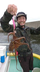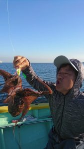 後半は空振りが多く、乗りも少な目でエギのロストが目立ちましたがキロオーバーも混じって今日も何とか全員キャッチできました。