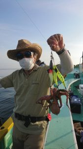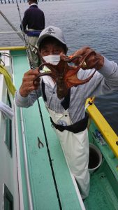 昨日までの僚船からの情報通り厳しい展開になりましたが潮の流れが緩んでから平場でやっと型を見られてからは、数杯拾えました。その後は、後が続かず、上がり間際に上げ潮に変わってから、また数杯拾えて終了となりました。