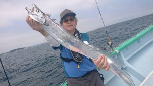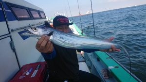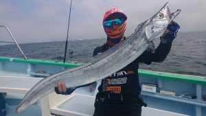 途中で僚船情報で’サワラ’キャッチの朗報が有り、一流しだけチャレンジしてみました。しばらくはキャストしてもらいましたが 風・波ともに少し強く 本日はあきらめてタチウオ狙いに専念しました。