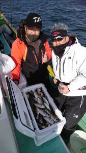 コメント:今日もスタートからポツポツと釣れ始めて、25センチ前後の中型を主体に30センチクラスまでの良型が多く釣れて、たまにダブルもあり、好調なスタートとなりました。