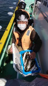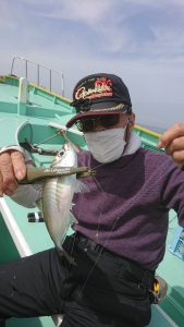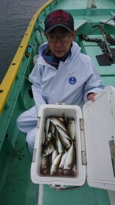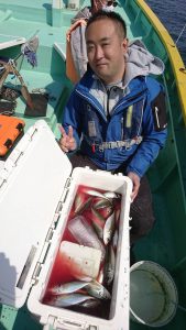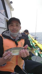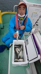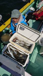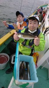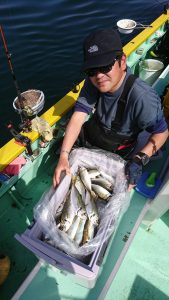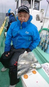 その後もアタリの出方は変わらず、船中のどこかしらでは釣れてましたが、なかなか連発までは続かないような煮え切らないアタリ方で終了まで我慢の釣りになりました。