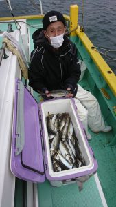 コメント: 今日もスタートからポツリ…ポツーリ…とアタリが出ましたが今一つ活性が上がり切らず、朝イチのサービスタイムでひとまずお客さま16名さま全員型を見られましたがたまに釣れる程度の釣れ方でした。