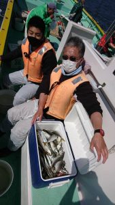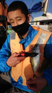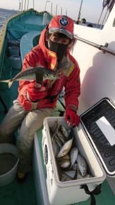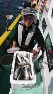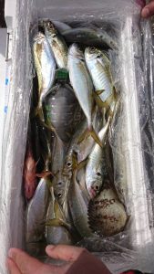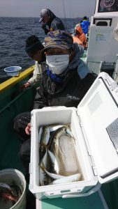 今日は派手な釣れ方をする時間帯は見られませんでしたが終始、船中の誰かしらがアジを掛けている程度の釣れ方でアタリが続きました。